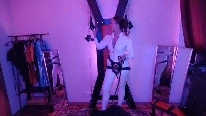 Domina Scarlet - 100 Stroke Caning In White Shirt And Jodhpurs